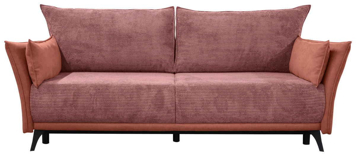 Ihr Aushängeschild, was Wohnlichkeit anbelangt: ein rosa- und altrosafarbenes Schlafsofa mit Cord-Flachgewebe-Bezug, das es in sich hat!