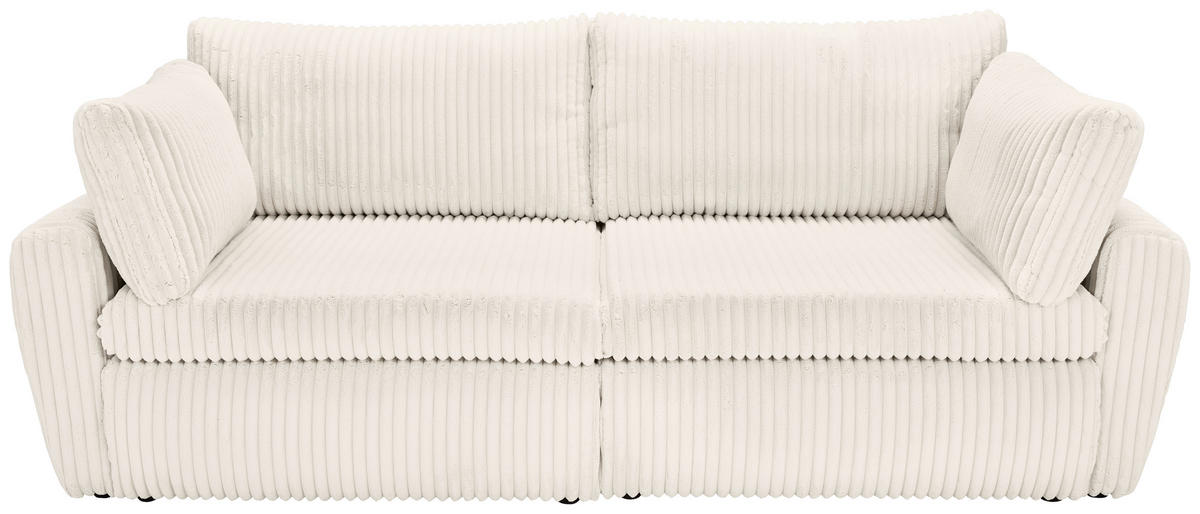 Eine Sonderportion Heimeligkeit schenkt Ihnen dieses weiße Schlafsofa mit Cord-Plüsch-Bezug. Greifen Sie zu!