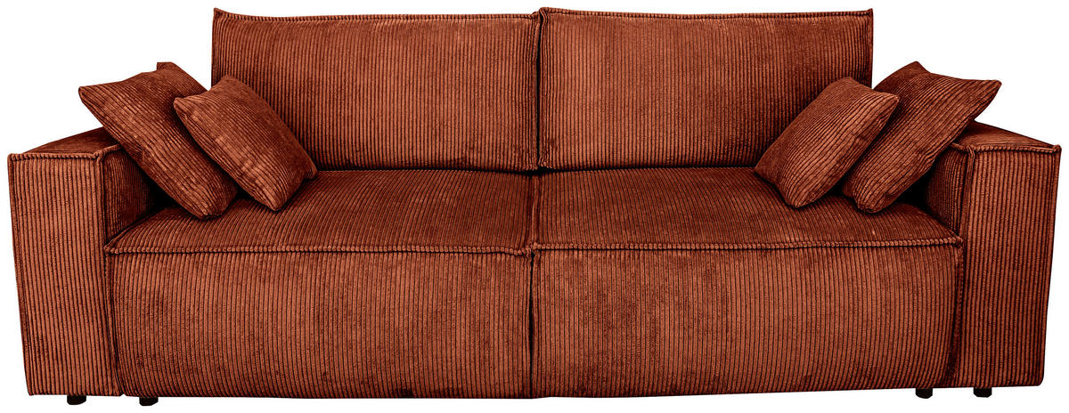 Ihr rostrotes Schlafsofa mit Cord-Bezug verführt dazu, behaglich die verdiente Me-Time zu genießen!
