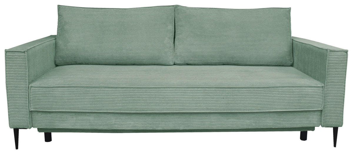 Ihr Aushängeschild, was Wohnzufriedenheit betrifft: ein salbeigrünes Schlafsofa mit Cord-Bezug, das es in sich hat!