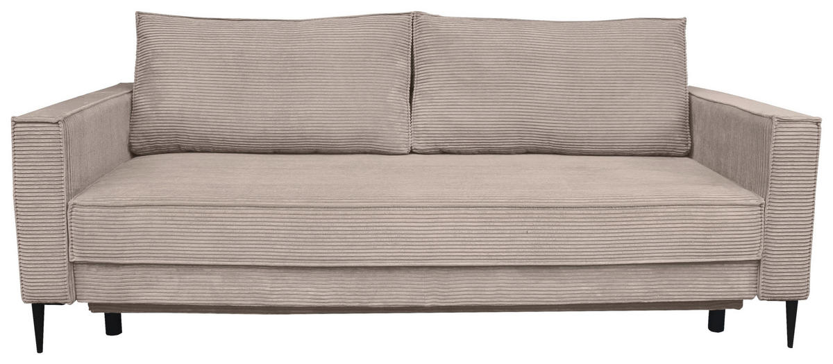 Rein in die Komfortzone: Dieses taupefarbene Schlafsofa mit Cord-Bezug entführt Sie auf ein traumhaftes Terrain zum geruhsamen Durchatmen!