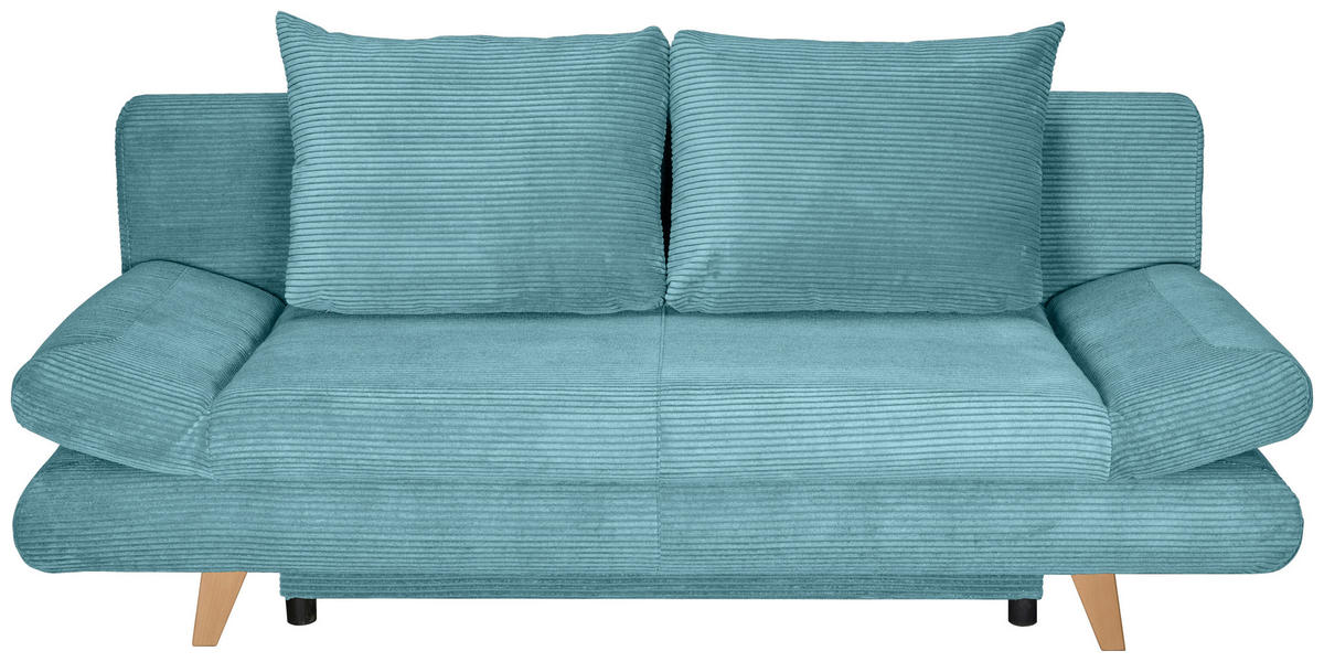 Gönnen Sie sich mit diesem türkisen Schlafsofa mit Cord-Bezug ein famoses Upgrade für Ihr geliebtes Heim!