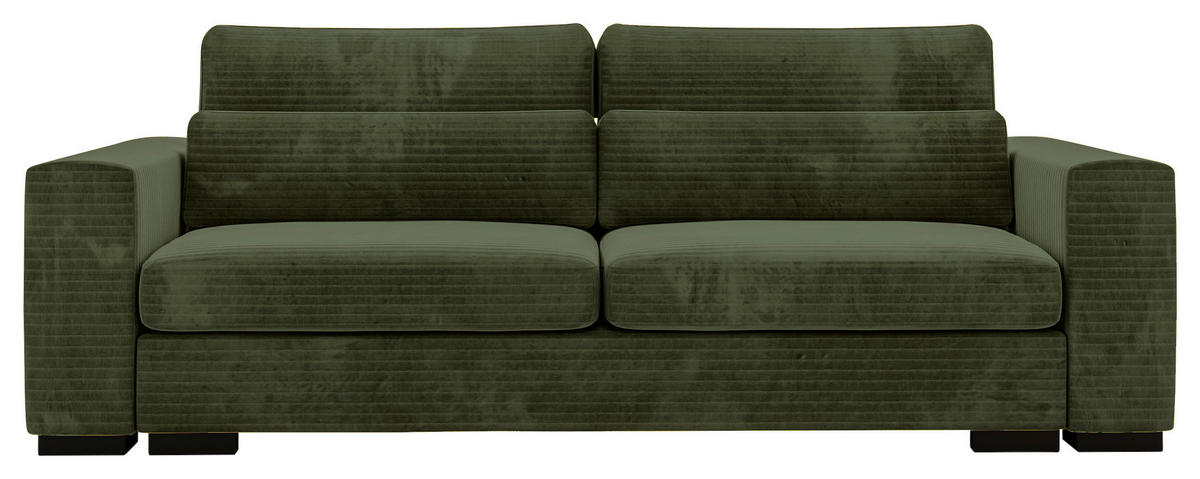Makelloses Design Die charmante Farbgebung in Olivgrün verhilft dem Polstermöbel zu einer geschmackvollen Gestaltung. Stimmige Akzente setzen dazu die eckigen Füße in Schwarz.