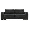echt bezogenen Rückens präsentiert die Couch selbst frei im Raum stehend rundum eine erstklassige Figur.