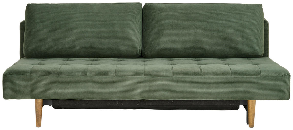 SCHLAFSOFA Cord Dunkelgrün inkl. Rückenkissen, Bettkasten, Schlaffunktion, Rücken echt, Liegefläche im Originalstoff