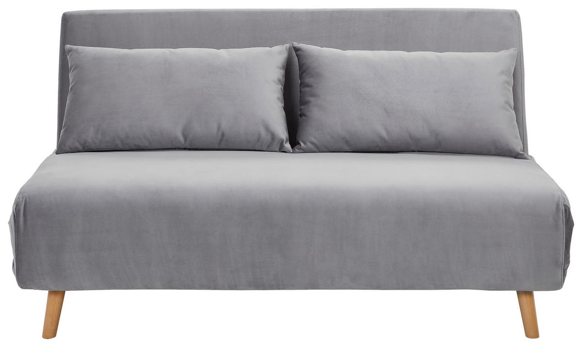 Können Sie sich etwas Besseres vorstellen als auf diesem hellgrauen Schlafsofa mit Samt-Bezug alles um sich herum zu vergessen?