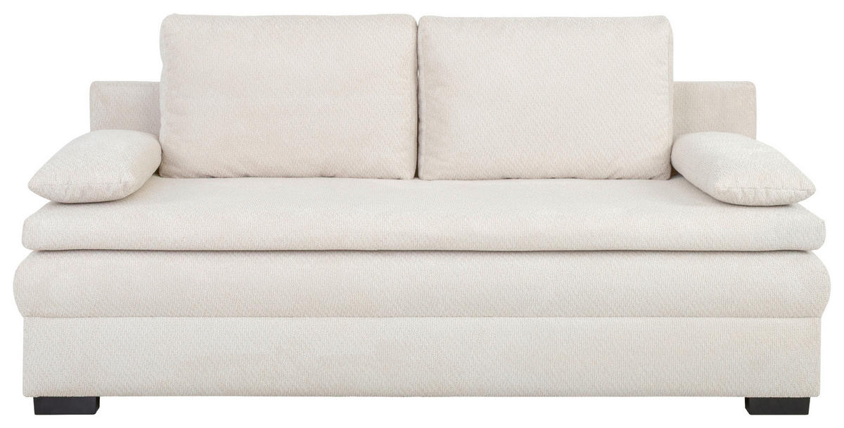 Eine Sonderportion Heimeligkeit schenkt Ihnen dieses cremefarbene Schlafsofa mit Struktur-Bezug. Greifen Sie zu!