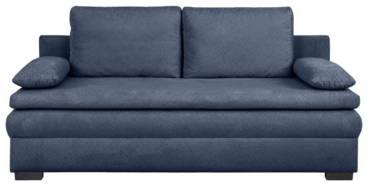 Eine Sonderportion Heimeligkeit schenkt Ihnen dieses dunkelblaue Schlafsofa mit Struktur-Bezug. Greifen Sie zu!