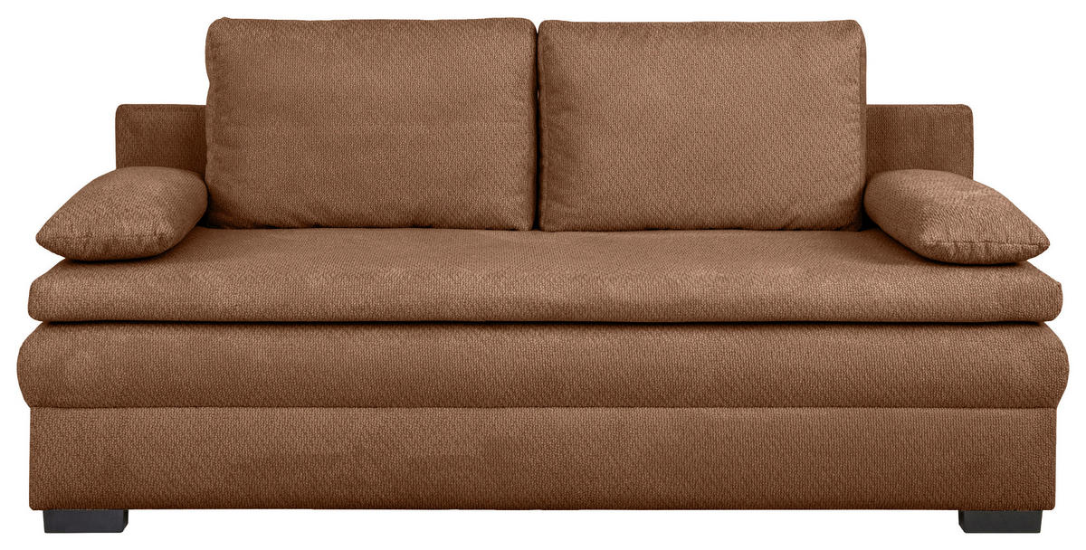 Eine Sonderportion Heimeligkeit schenkt Ihnen dieses rostfarbene Schlafsofa mit Struktur-Bezug. Greifen Sie zu!