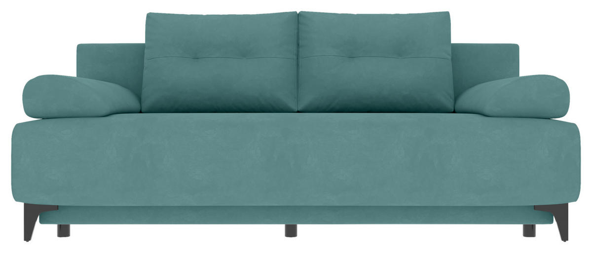 Sichern Sie sich mit diesem türkisen Schlafsofa mit Velours-Bezug das, was Ihnen am meisten bedeutet, wenn sich alles um das Thema Wohnzufriedenheit dreht!