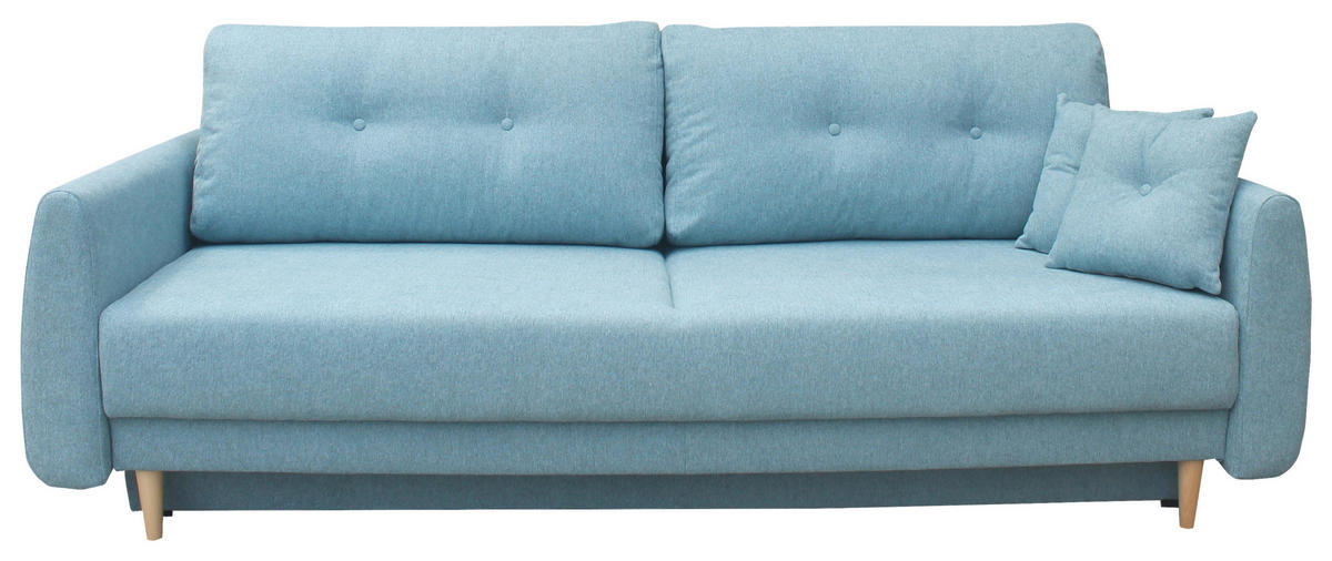 Dieses blaue Schlafsofa mit Webstoff-Bezug zaubert Ihnen bei jeder Gelegenheit zum Ausspannen ein Lächeln ins Gesicht!
