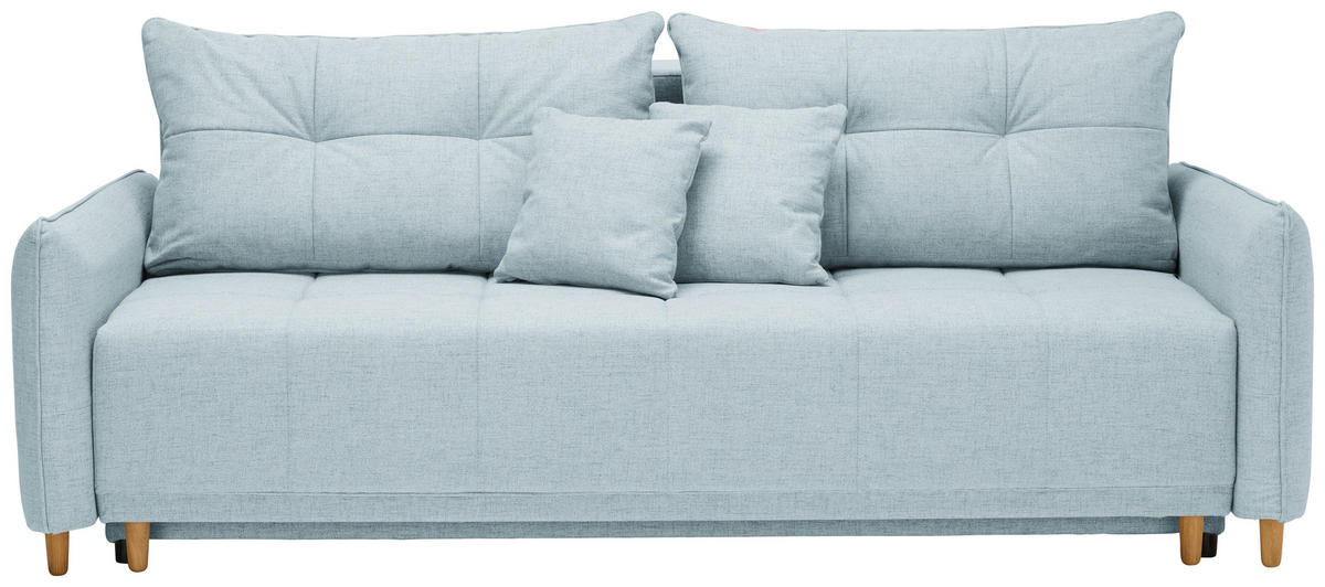 Ab auf Ihr hellblaues Schlafsofa mit Webstoff-Bezug!
