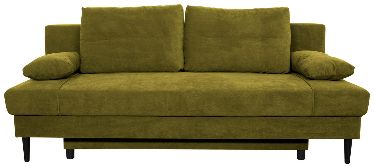 Wenn dieses olivgrüne Schlafsofa mit Webstoff-Bezug bei Ihnen einzieht, dreht sich alles um Behaglichkeit!