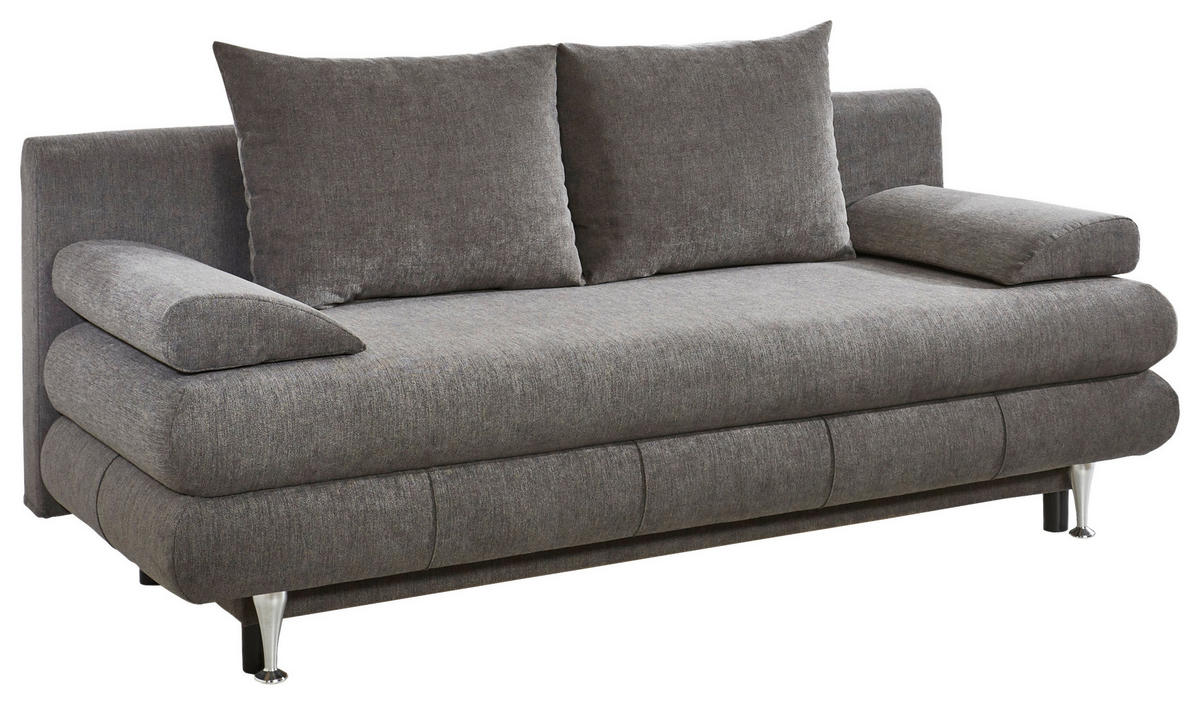 Sehenswerter Hingucker Mit dem dezenten Kolorit in Taupe bietet das Polstermöbel eine ansprechende Gestaltung, die sich geschmackvoll in unterschiedliche Einrichtungskonzepte einfügt. Hohe Füße aus mattem, geschliffenem Edelstahl in Schwarz und Edelstahlfarben setzen stylishe Akzente und schaffen leichte Bodenfreiheit.