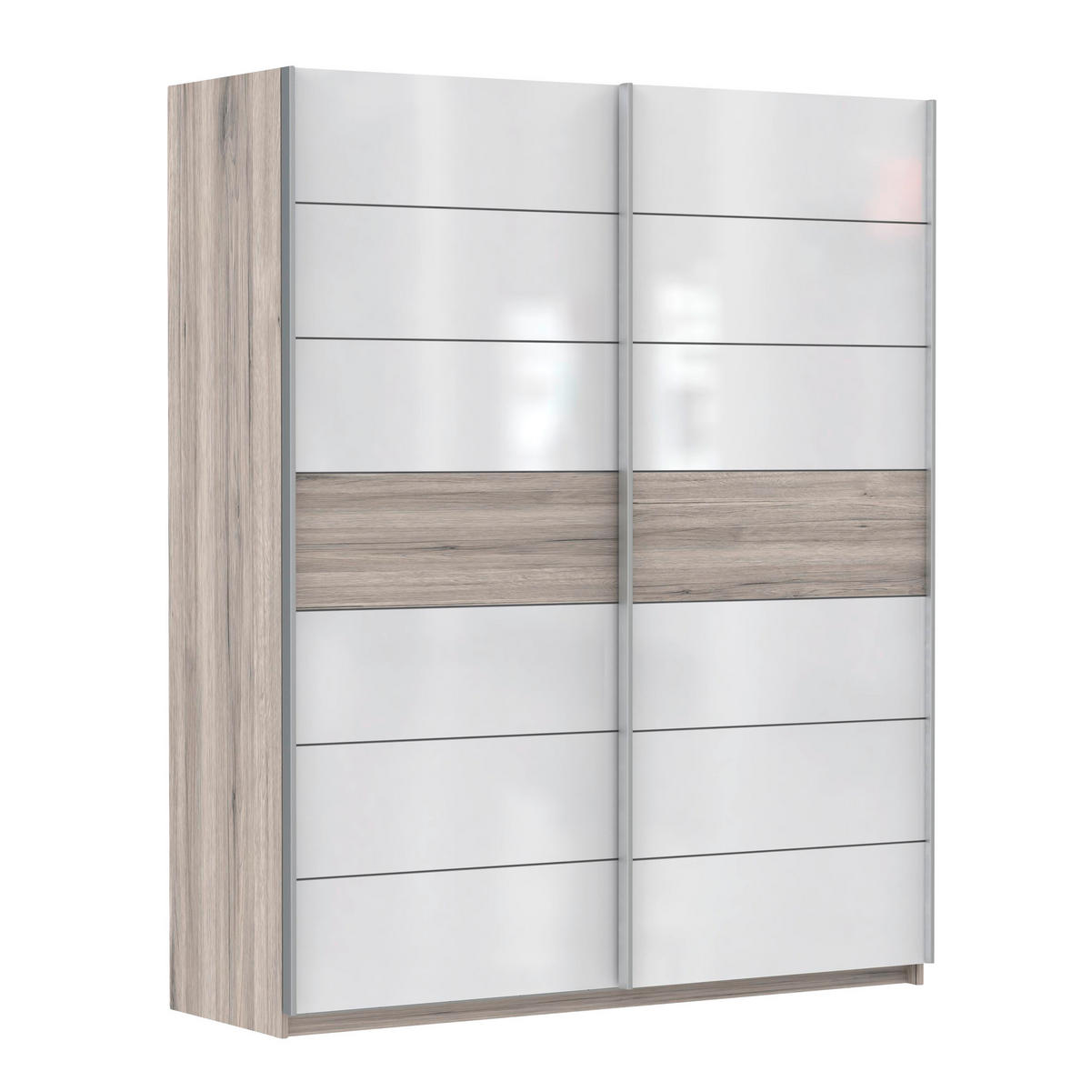 Carryhome SCHWEBETÜRENSCHRANK 2-türig Eichefarben, Weiß Hochglanz