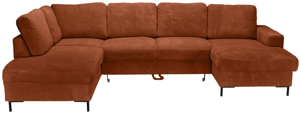 Ihr Aushängeschild, was Behaglichkeit betrifft: eine rostrote Wohnlandschaft mit Cord-Bezug, die es in sich hat!