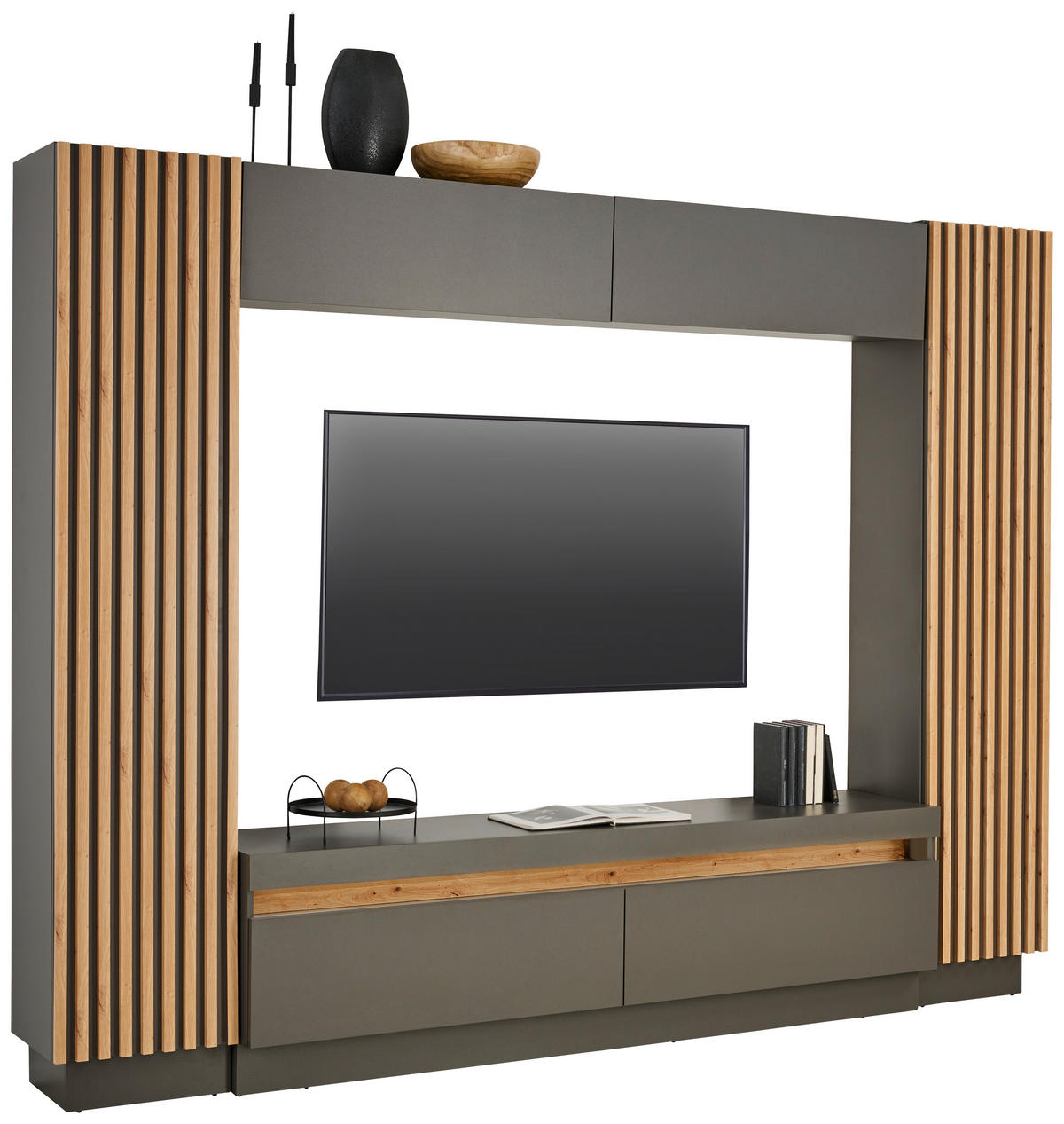 Carryhome WOHNWAND in Anthrazit, Eiche Artisan 272,6/209,5/41,3 cm