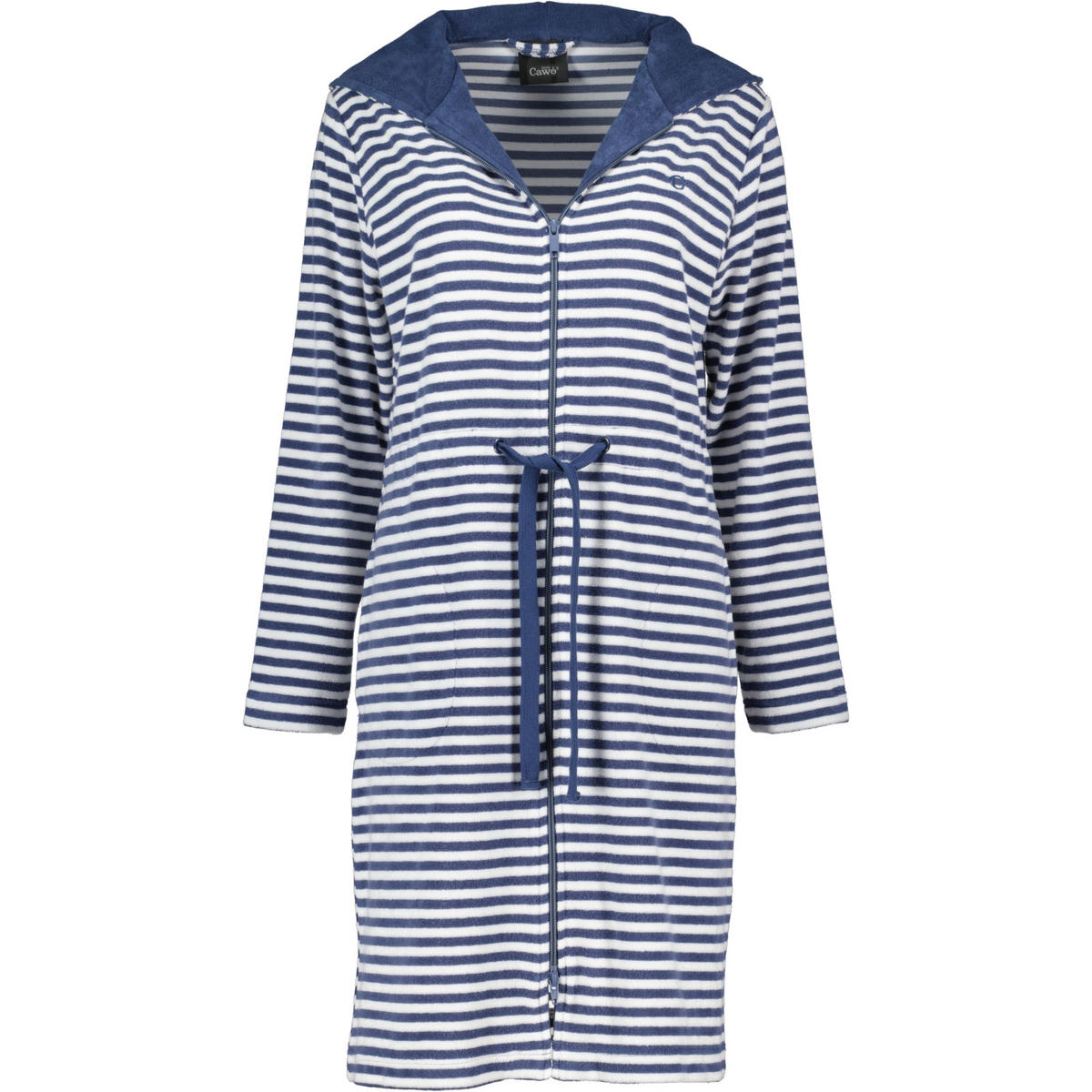 Der Cawö Bademantel Campus 834 überzeugt mit einem Streifen-Design, farblich abgesetzter Kapuze und einer attraktiven Kurzform. Er besitzt einen praktischen Reißverschluss und ein Tunnelgürtel-Band, das allen Damen eine attraktive Silhouette verleiht. Cawö Campus Bademantel 834 - frischer Streifen-Look mit Reißverschluss Cawö Damen-Bademantel - Größentabelle: 32/34 - XS 36/38 - S 40/42 - M 44/46 - L 48/50 - XL