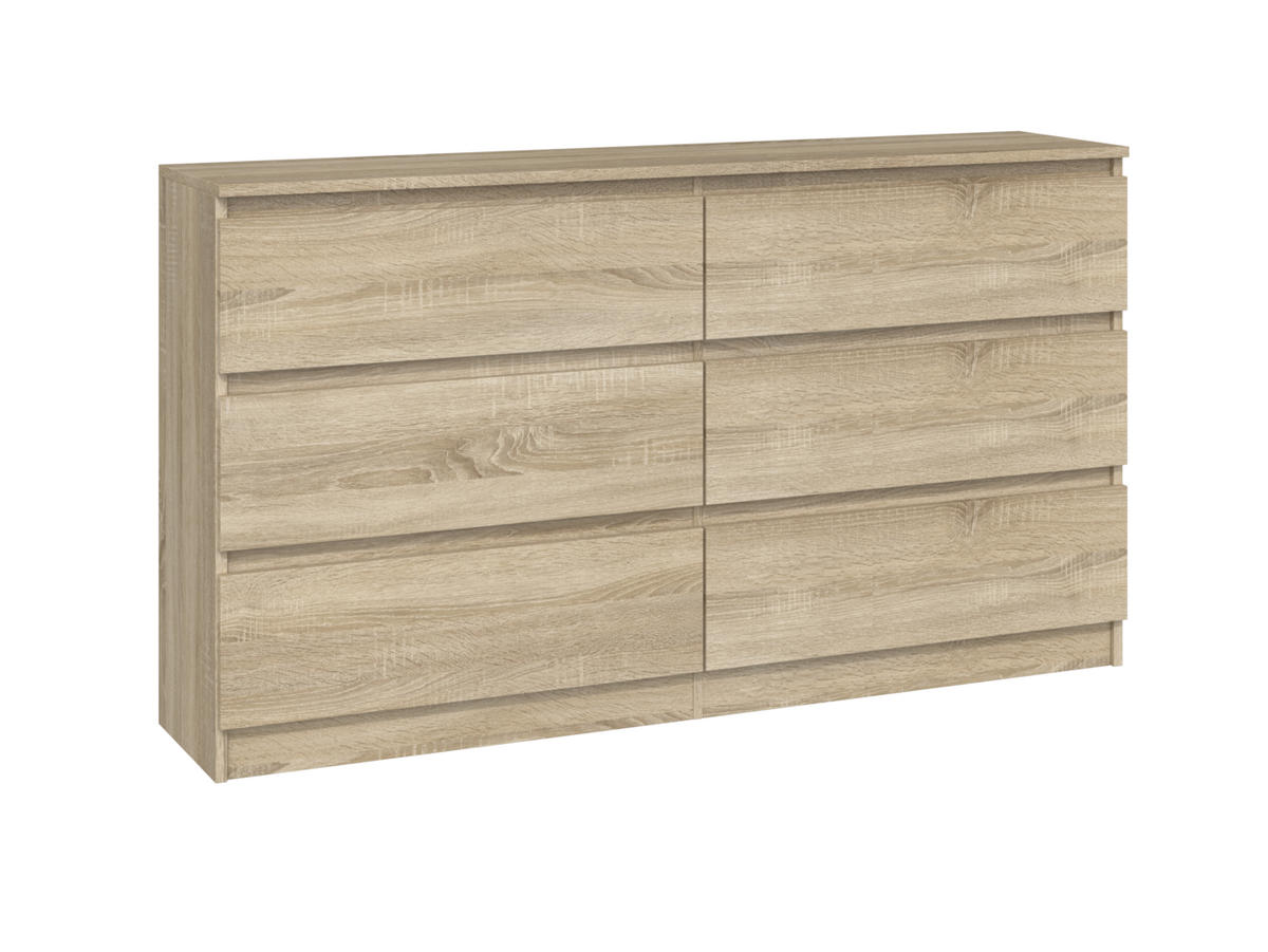 MODELL: M6 140 CM FARBE: EICHE SONOMA Die moderne Kommode der Kollektion MALWA ist ein funktionelles und geräumiges Möbelstück, das die Inneneinrichtung Ihres Schlaf-, Wohn- oder Kinderzimmers verschönern wird.