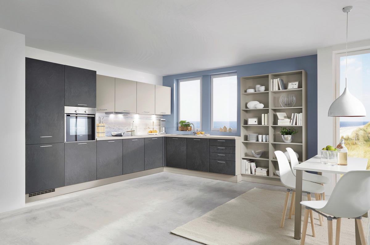 Einbauküche (L-Form) in Schieferfarben und Grau: Kochen in chicer Atmosphäre