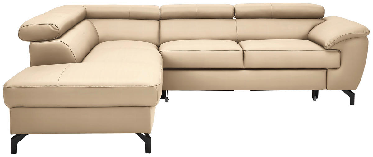 So ein beiges Ecksofa mit Leder-Bezug hebt Ihr inspiriertes Home-Living auf ein außergewöhnliches Niveau!