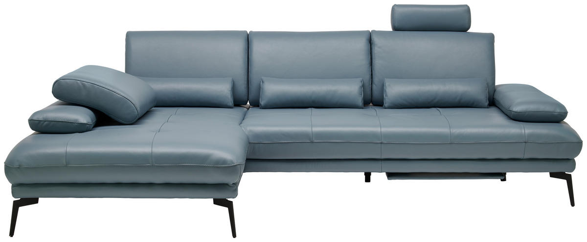 Verwöhnen Sie sich selbst mit diesem graublauen Ecksofa mit Leder-Bezug!