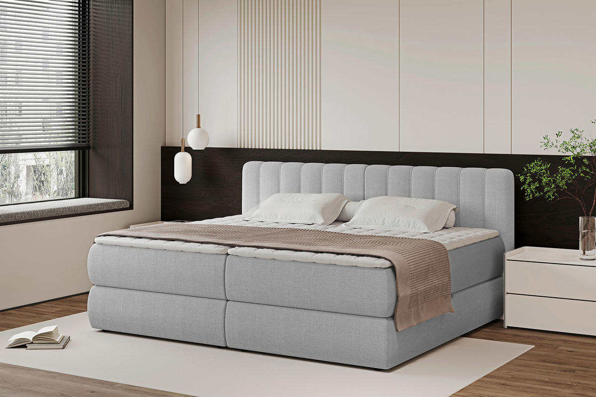 Hellgrau inklusive Bettkasten bringt einen eleganten Touch in Ihre Ruheoase.