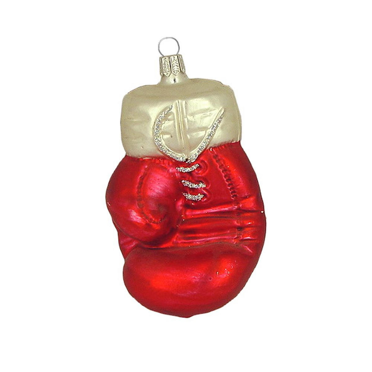 CHRISTBAUMSCHMUCK Boxhandschuh Rot Seidenweiss 13 cm