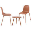 Für die Produktion der Sitzschalen und der Tischplatte werden recycelte Kunststoffe verwendet, um den ökologischen Fußabdruck so gering wie möglich zu halten.