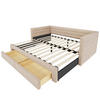 Dieses grau 3-in-1-Polsterbett aus strapazierfähigem Baumwoll-Leinen-Stoff kann als Sofa, Einzelbett (90x190 cm) oder Doppelbett (180x190 cm) genutzt werden. Zwei versteckte Schubladen bieten praktischen Stauraum, während der benutzerfreundliche Ausziehmechanismus einen sekundenschnellen Konfigurationswechsel ermöglicht.