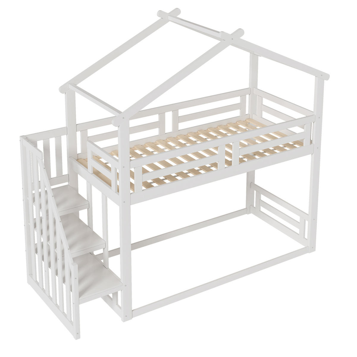 ComfortXL ETAGENBETT 90/200 cm DE-01572, in Weiß, mit Sicherheitstreppe und Hausdesign