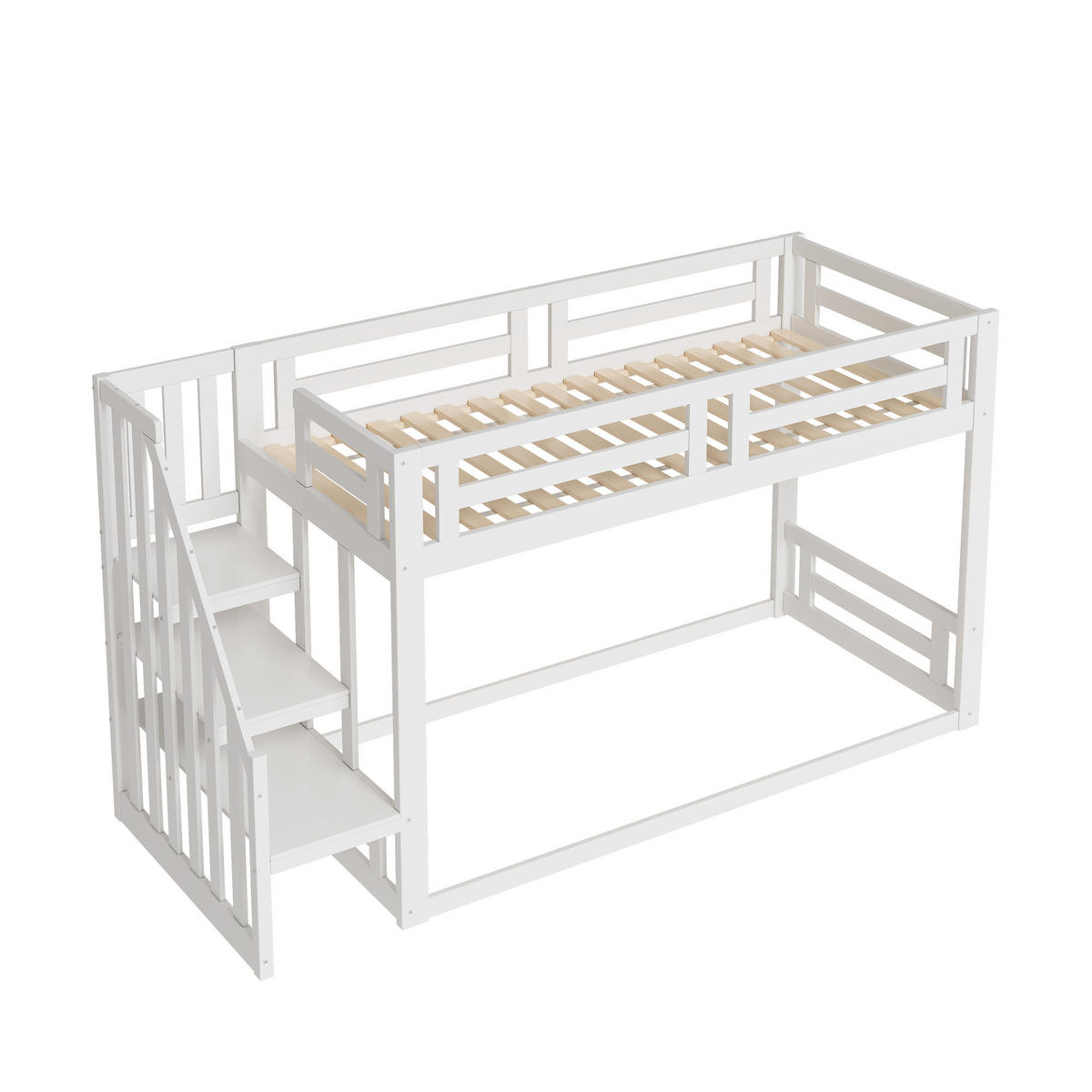 ComfortXL ETAGENBETT 90/200 cm DE-01573, in Weiß, mit Sicherheitstreppe und offenem Unterbett