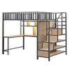 ComfortXL HOCHBETT 140/200 cm DE-01503, in Schwarz, mit Schreibtisch, Kleiderschrank, Ladebuchse und LED