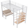 ComfortXL HOCHBETT 140/200 cm DE-01525, in Weiß, mit Polstersofa, Stauraum und Sicherheitstreppe