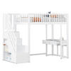 Dieses Hochbett in Weiß aus massivem Kiefernholz bietet einen Schlafbereich (90x200 cm), einen integrierten Multifunktionstisch (als Frisier-, Computer- oder Arbeitstisch nutzbar), eine sichere Aufbewahrungstreppe mit reichlich Stauraum sowie 15 Lattenroste. Perfekt für kleine Kinderzimmer, um Platz zu maximieren. Inklusive Lattenrost – Matratze separat erhältlich (empfohlene Höhe 8-12 cm).