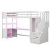 Dieses Holz-Hochbett in Holzfarbe und Weiß bietet einen Einzelkleiderschrank, einen großen Schreibtisch mit europäischen Steckdosen und eine mehrfarbige LED-Lichtleiste. Die Treppe mit Staufächern, das Kopfteil-Staufach und das mehrstöckige Regal sorgen für reichlich Stauraum und Ordnung im Kinder- und Jugendzimmer.
