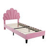 Dieses beige Kinderbett aus hautfreundlichem Samtstoff begeistert mit einem blumenförmigen, gepolsterten Kopfteil, das als bequeme Rückenlehne dient. Der stabile Bettrahmen aus MDF und Spanplatten mit kreuzförmiger Metallhalterung und 12 verstärkten Lattenrosten bietet eine Tragfähigkeit von bis zu 200 kg.