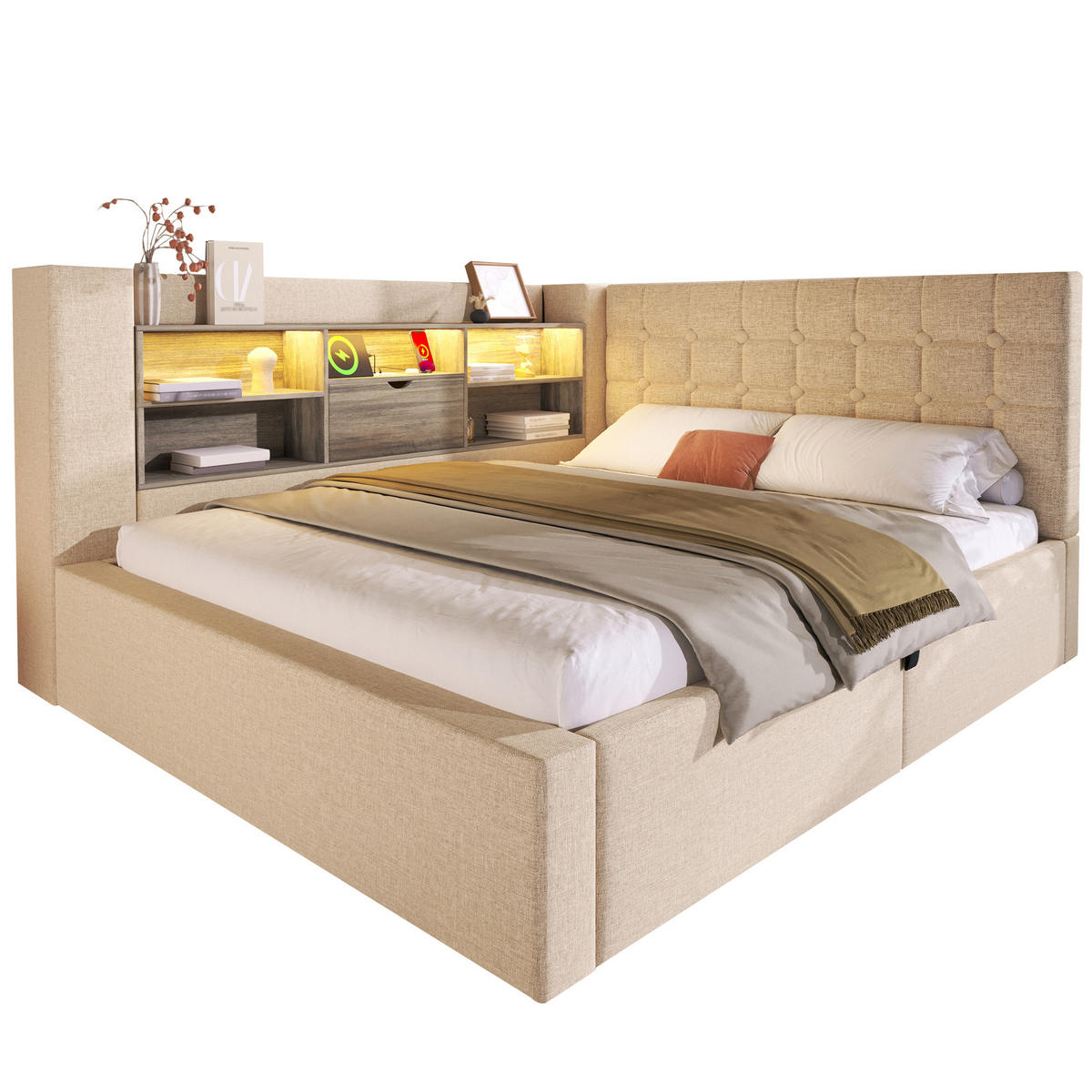 ComfortXL STAURAUMBETT 140/190 cm DE-00620, in Beige, LED-Beleuchtung und USB-Anschluss