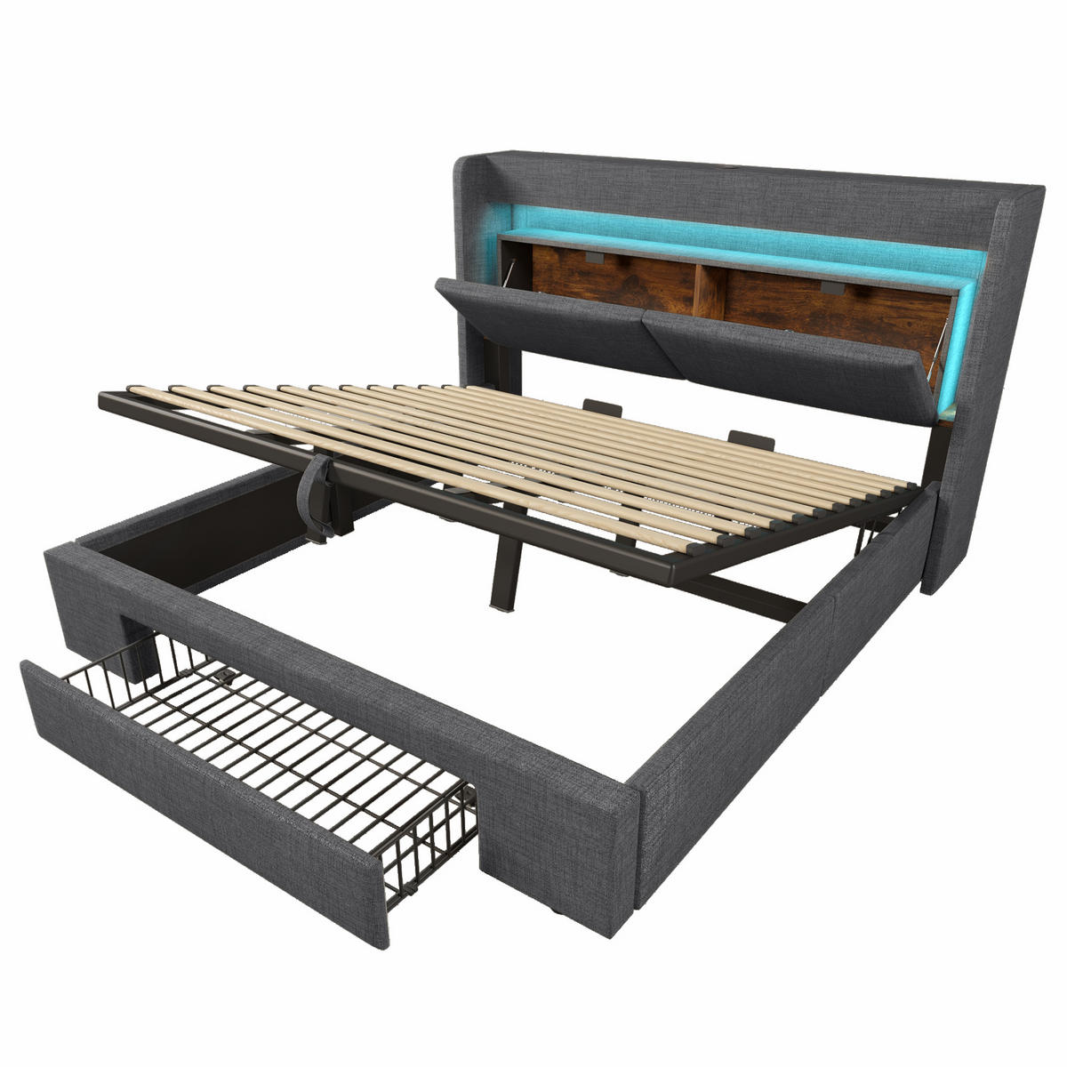 ComfortXL STAURAUMBETT 180/200 cm DE-00603, in Grau, hydraulischem Bettkasten