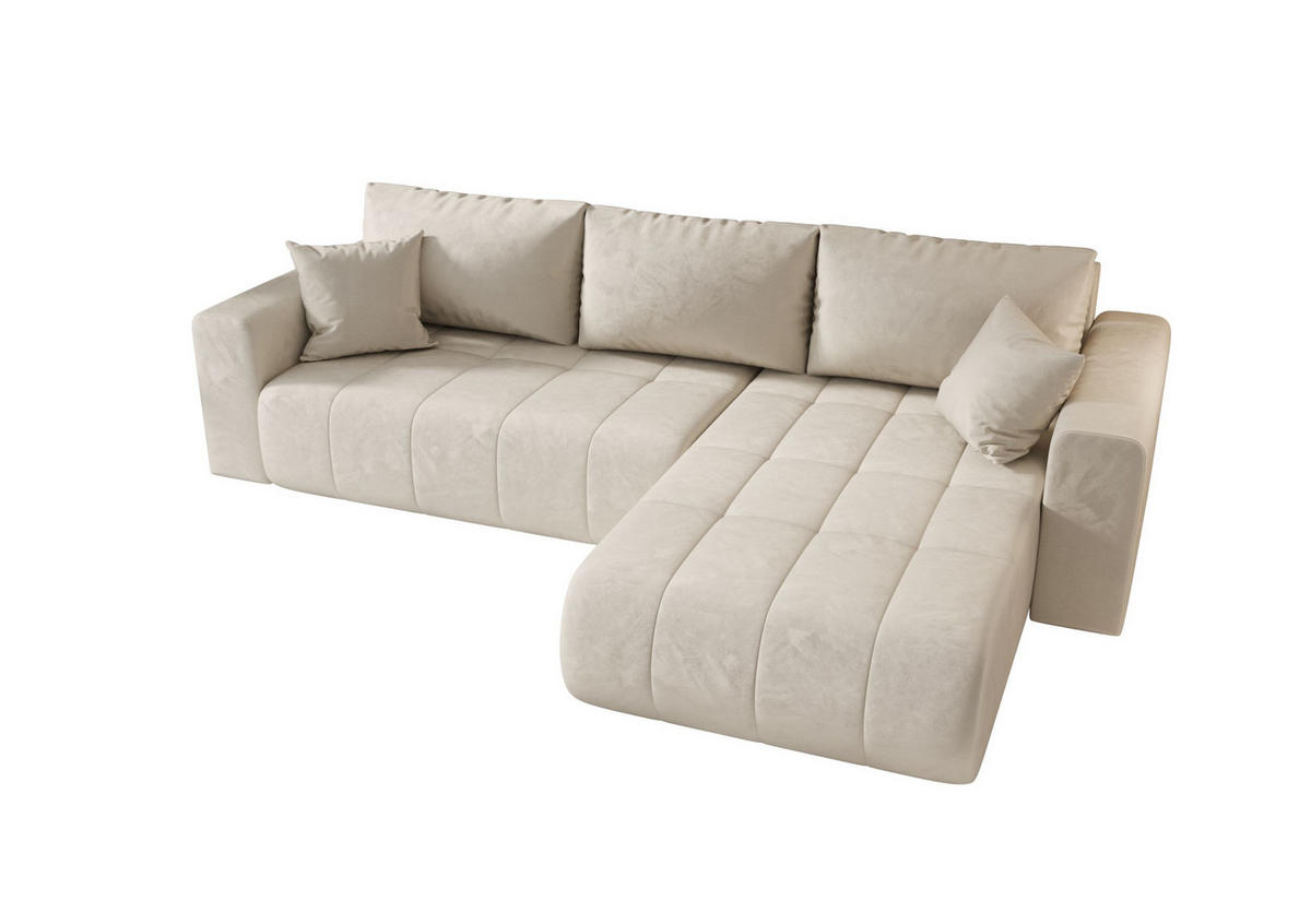 Ecksofa LARA rechts beige Velours Monolith 2 - Schlaffunktion, BettkastenDas Ecksofa
