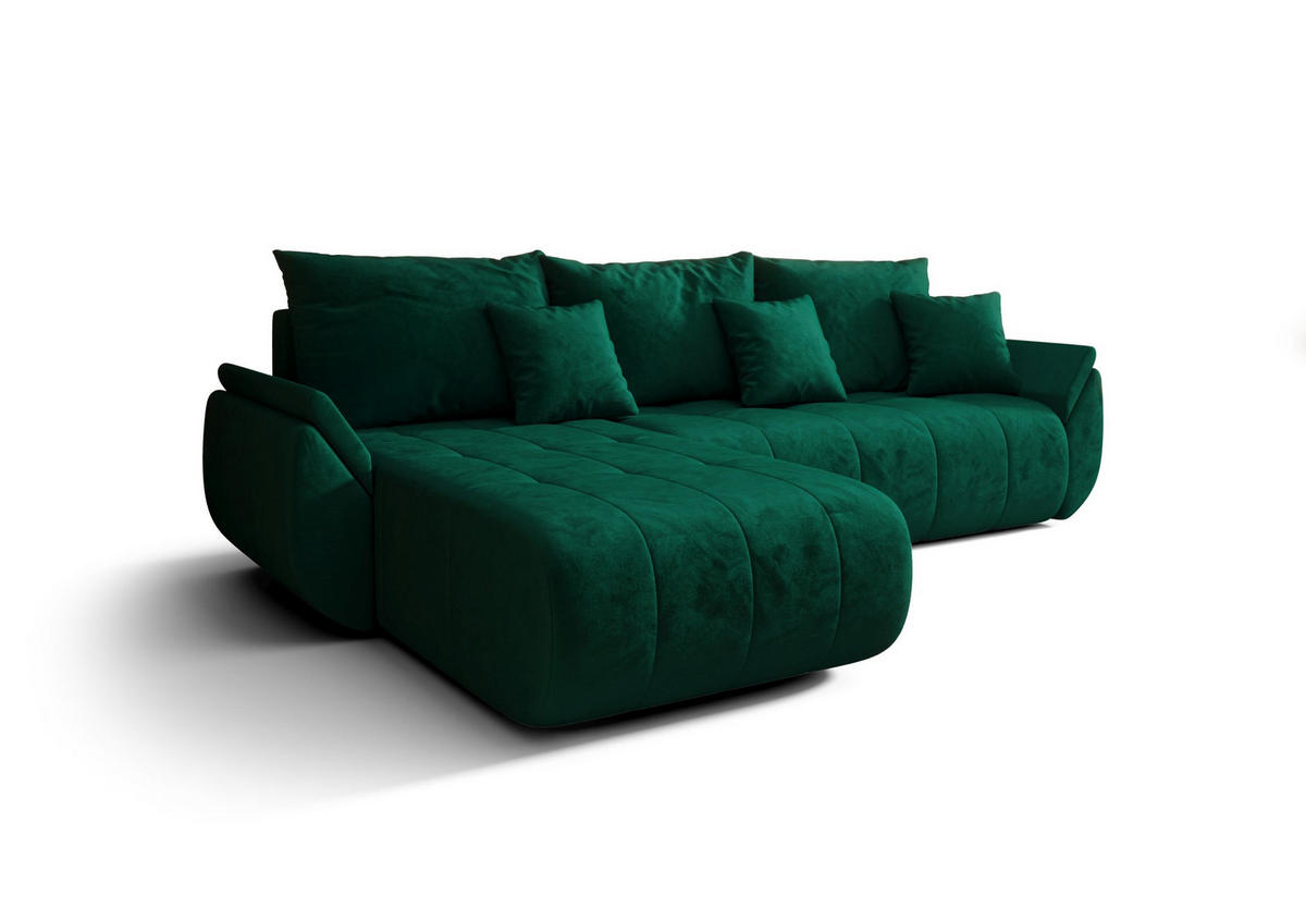 Ecksofa SYDNEY links grün Velours Monolith 37 - Schlaffunktion, BettkastenDas Ecksofa