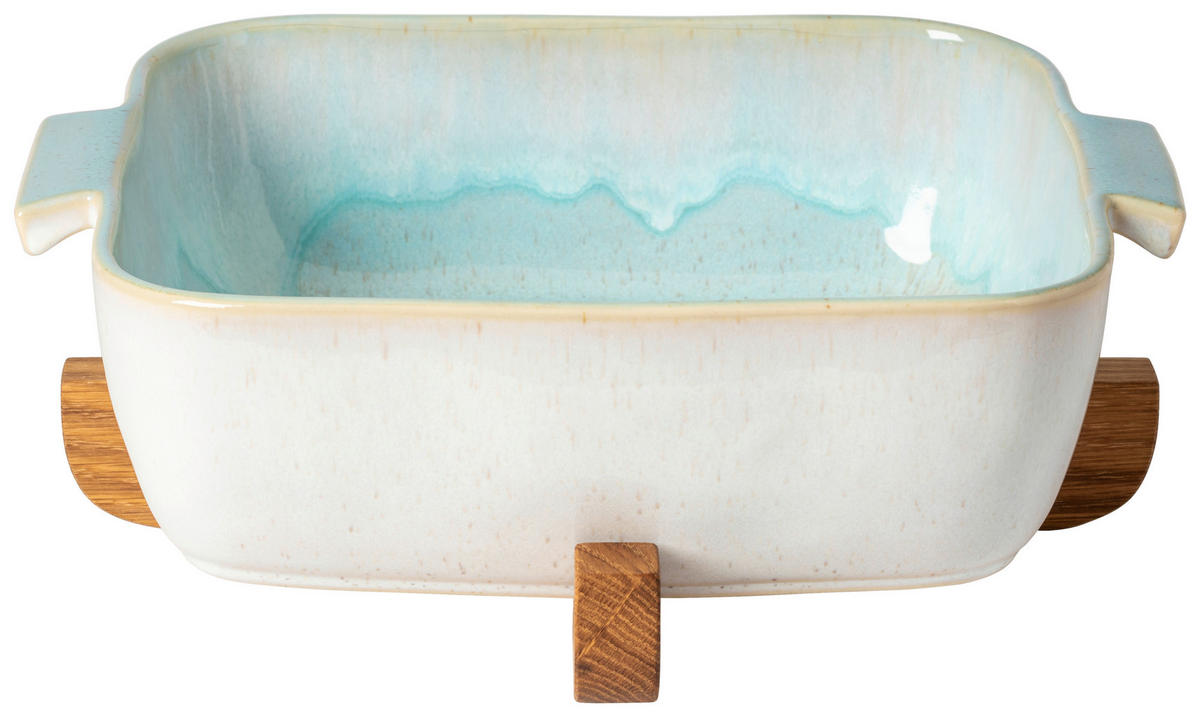 AUFLAUFFORM Holz, Keramik Feinsteinzeug  - Weiß Hochglanz/Hellblau, Basics, Holz/Keramik (32/30/13cm) - Costa Nova