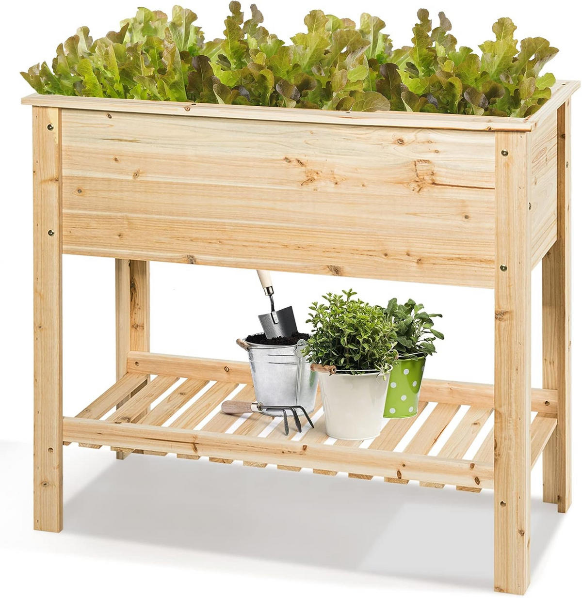 Es besteht aus festem und natürlichem Tannenholz und ist äußerst witterungsbeständig. Durch sein charmantes Design ist es ein toller Blickfang für Ihren Außenbereich, außerdem bietet es viel Platz für Pflanzen. Wenn alles blüht, werden Sie Ihre Augen nicht mehr davon abwenden können!