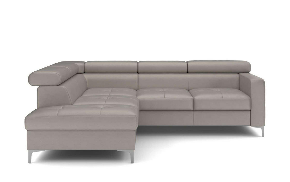 ECKSCHLAFSOFA aus Echtleder mit Schlaffunktion und Bettkasten - Chromfarben/Silberfarben, Leder/Holz (242/207cm) - CottaCotta