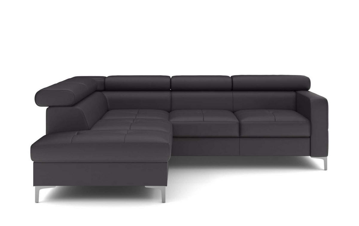 ECKSCHLAFSOFA aus Echtleder mit Schlaffunktion und Bettkasten - Chromfarben/Silberfarben, Leder/Holz (242/207cm) - CottaCotta