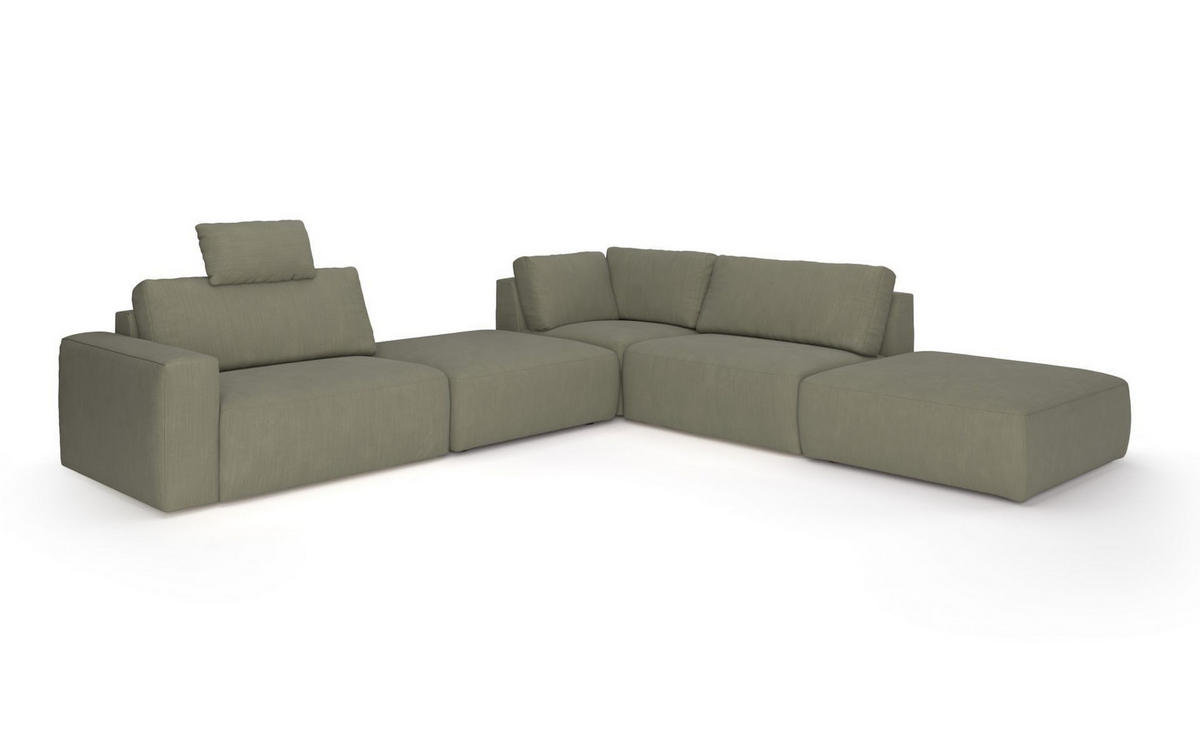 Auffällig. Anders. Außergewöhnlich - Ecksofa mit integrierter Kopfstütze Dieses großzügige Ecksofa ist nicht einfach ein Möbelstück – es ist ein architektonisches Statement. Mit seiner markanten Linienführung und der kraftvollen Formgebung zieht es alle Blicke auf sich. Ein Design, das man nicht überall sieht. Für Menschen, die das Besondere suchen.