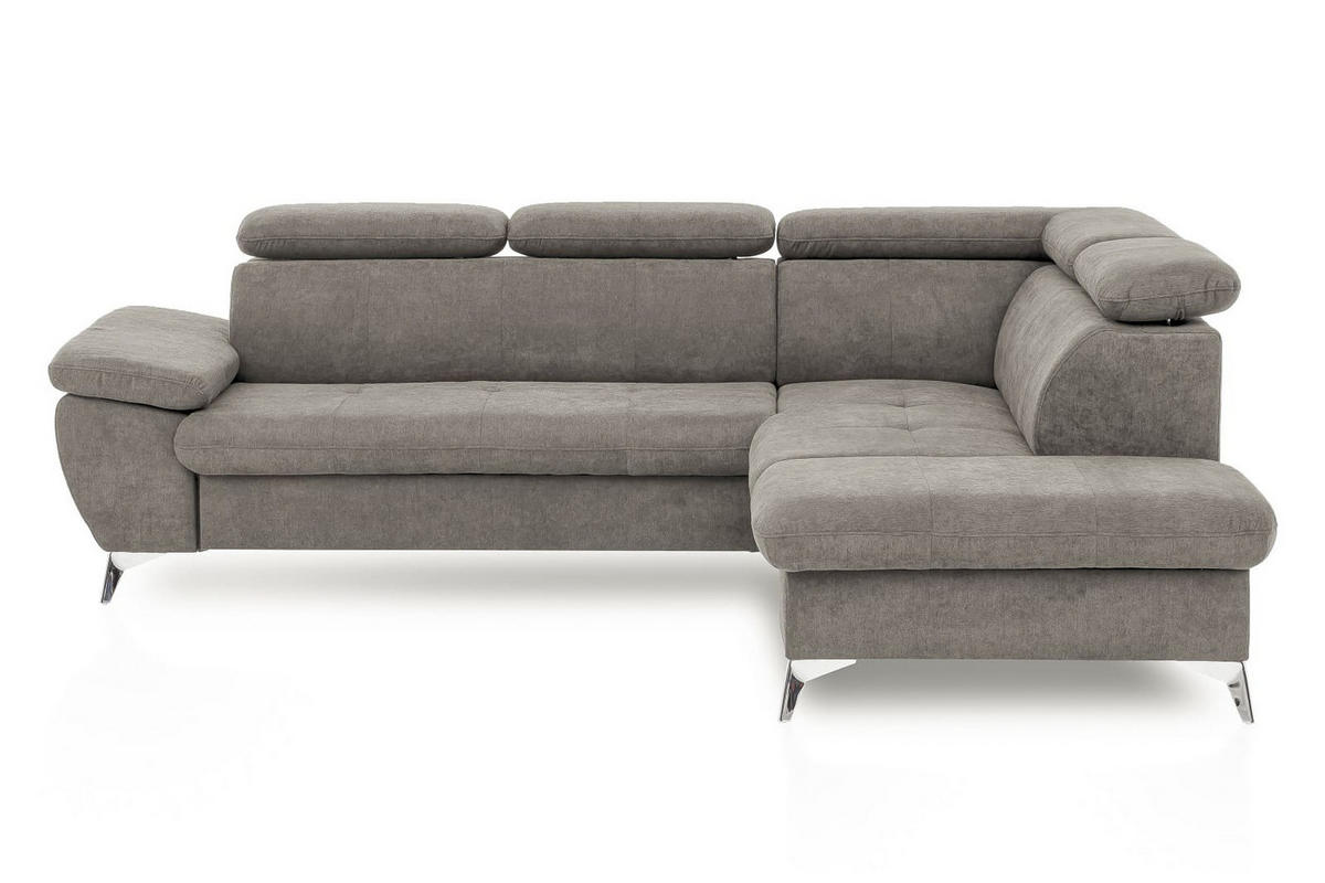 ECKSOFA mit Schlaffunktion und praktischem Bettkasten - Chromfarben/Grau, Textil/Metall (209/256cm) - CottaCotta