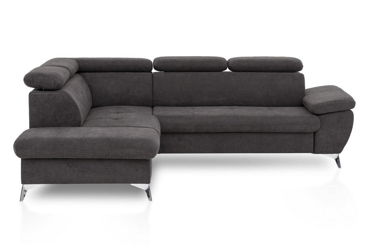ECKSOFA mit Schlaffunktion und praktischem Bettkasten - Chromfarben/Anthrazit, Textil/Metall (256/209cm) - CottaCotta