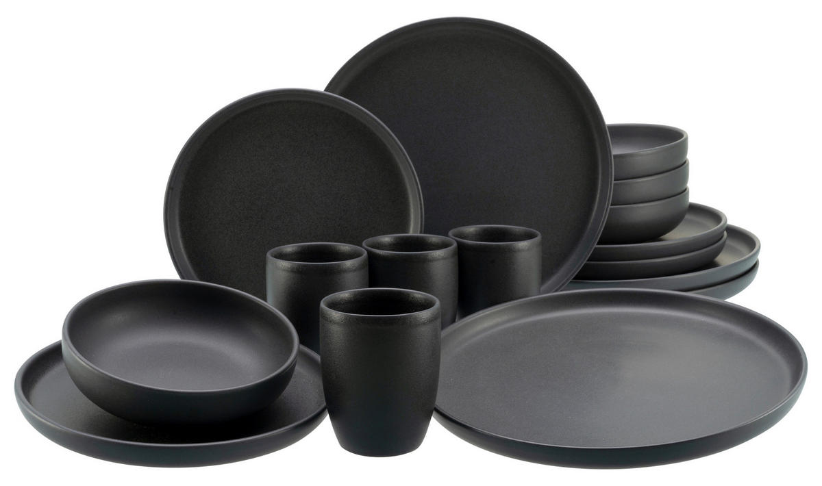 Steinzeug-Kombiservice (16-teilig) in mattem Schwarz - stilvoll speisen