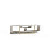 Ein Hauch von edlem Metall. Schon entsteht eine einzigartige Materialkombination, die Ihrem Wohnzimmer den Charme der Vergangenheit und das moderne Flair der Zukunft verleiht.Diese Konsole mit 4 Fächern bietet Stauraum für Ihren Fernseher, Ihre Mediathek, Spielkonsole, DVD-Player, Bücher, Accessoires und vieles mehr. Sie müssen kein Experte sein, um dieses TV-Element aufzubauen, denn wir liefern Ihnen das nötige Know-how in Form einer ausführlichen Anleitung gleich mit.
